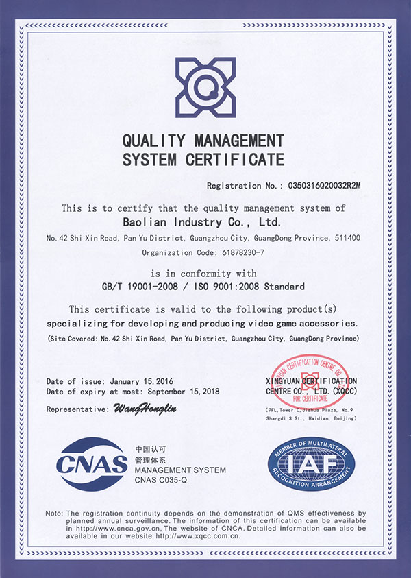 2002年 10月 开始导入ISO9001:2000国际标准(现已升级为ISO9001:2008国际标准 ),建立了完善的质量管理体系标准;为扩充市场、扩大业务范围;